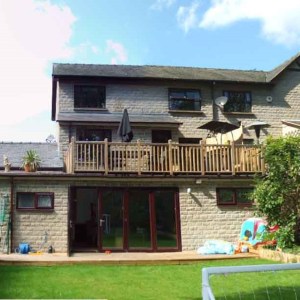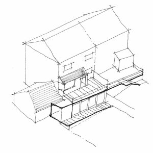 We designed a new garden room extension with sliding, folding doors leading directly to the garden and an internal staircase leading up to the main house above. Above this is a decked balcony overlooks the garden which is accessed directly from the house kitchen.